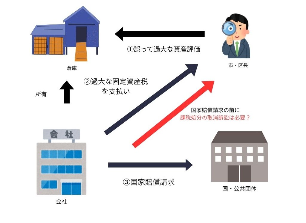 この裁判は、会社所有の倉庫の固定資産税を、誤った評価で価格を決定されたことについて、取消訴訟などで取消していない場合でも国家賠償請求ができるのかが問われた裁判です。